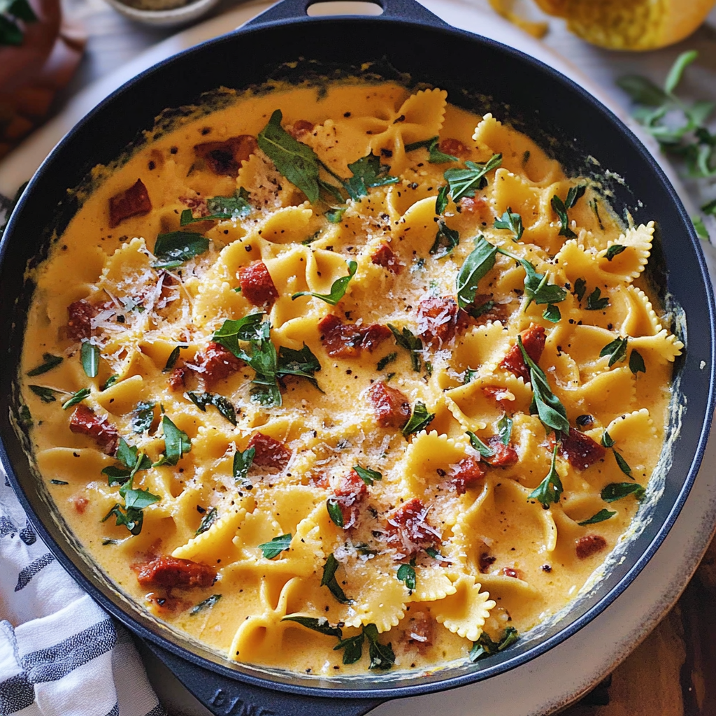 Cook the Pasta: While waiting on that beautiful squash, bring a large pot of salted water to boil and cook your pasta according to package instructions until al dente. Reserve half a cup of pasta water before draining—the starchy goodness will help bind everything later.