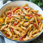 Cajun Chicken Pasta is a delightful fusion of rich, creamy sauce and bold Cajun spices, featuring tender chicken and vibrant bell peppers. This easy-to-make dish transforms simple ingredients into a restaurant-quality meal, perfect for impressing guests or enjoying a cozy dinner at home. With its beautiful presentation and mouthwatering flavors, Cajun Chicken Pasta is sure to become a favorite in your kitchen.