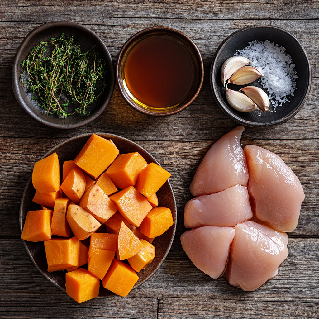 Here’s what you’ll need to make this delicious chicken and sweet potato recipe:
