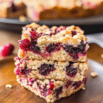 Cranberry Bars are delicious, sweet treats made primarily with fresh or dried cranberries. These bars typically have a buttery base and a chewy texture, making them perfect for snacks or desserts. They often include ingredients like oats, sugar, and nuts to enhance flavor and nutrition. The tartness of cranberries contrasts beautifully with the sweetness of the other components, creating a delightful balance that many enjoy. Many people love to serve these bars during holidays or gatherings, as they are easy to make and share.