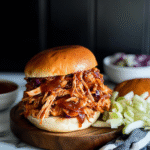 Enjoying Crockpot BBQ Pulled Chicken is like receiving a warm hug from your favorite relative—comforting, satisfying, and just downright delightful! enjoy with stuffed baked potatoes.