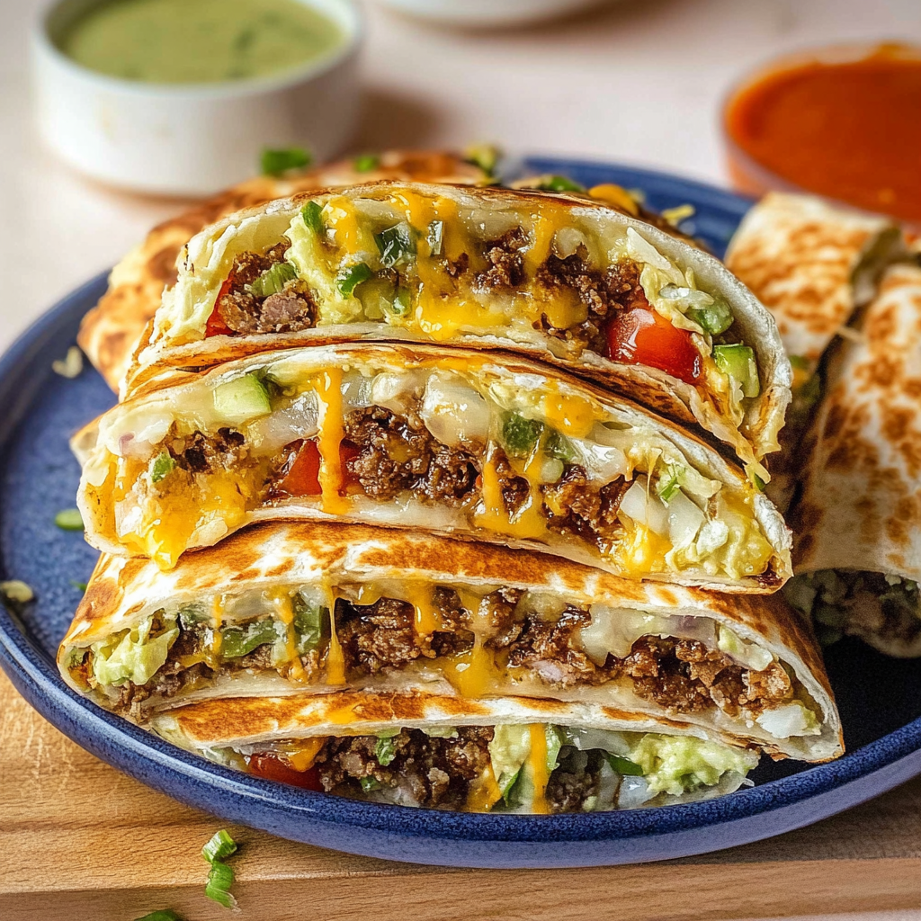Crunchwrap Supreme is a mouthwatering fusion of burrito and taco, offering a delightful explosion of flavors in every bite. Wrapped in a golden-brown tortilla, this dish features seasoned ground beef or turkey, creamy refried beans, fresh vegetables, and melted cheese, making it an irresistible option for busy weeknights or casual gatherings. Easy to prepare and customizable to suit your taste, each Crunchwrap delivers a satisfying crunch that will leave everyone wanting more.