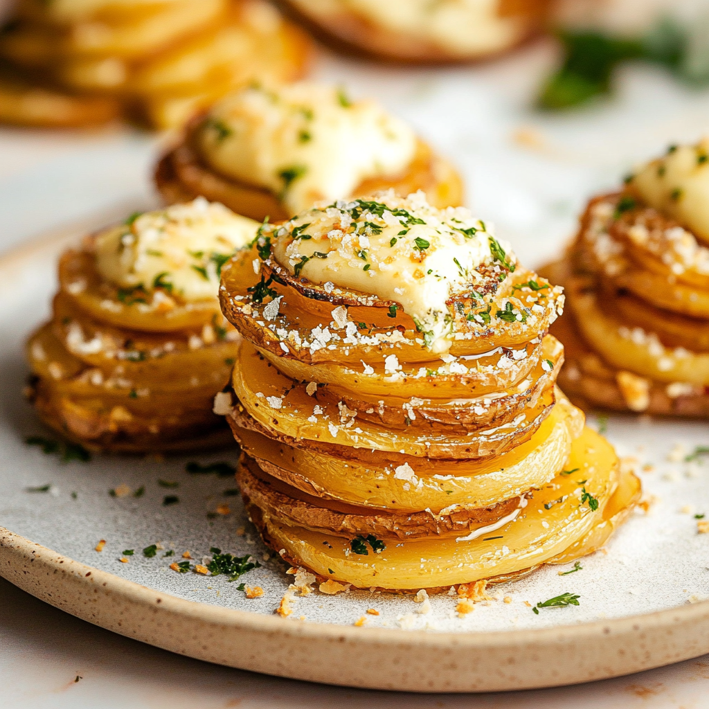 In summary, Easy Potato Stacks are not only visually stunning but also incredibly tasty and versatile. With simple steps and customizable options, anyone can prepare this delightful dish at home. Whether served as an appetizer or alongside your favorite main courses, these potato stacks will surely impress family and friends alike. Enjoy experimenting with different flavors while making Easy Potato Stacks your new go-to recipe!