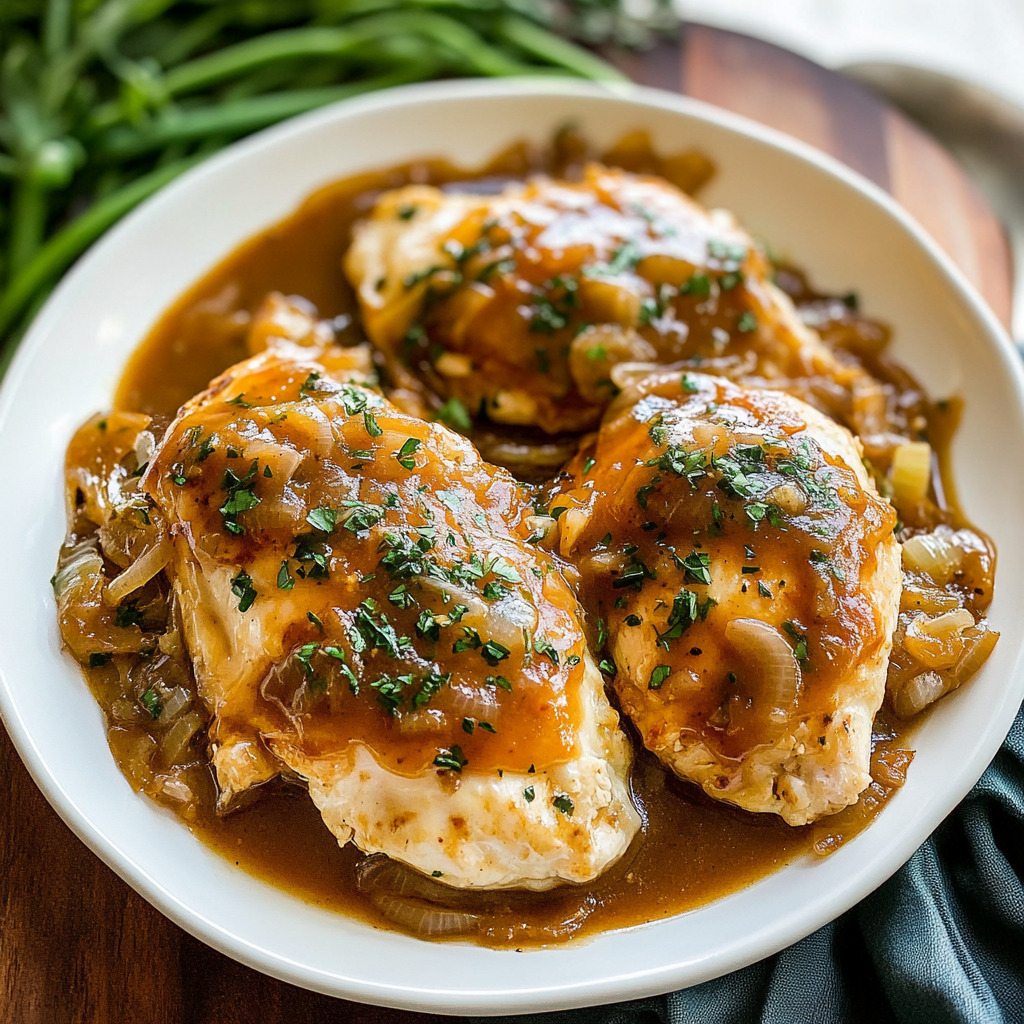 Imagine sinking your teeth into juicy chicken breast smothered in a rich, caramelized onion sauce, with gooey melted cheese draped over the top. Whether it’s a cozy family dinner or an impressive dish for guests, this recipe promises to steal the show and leave everyone begging for seconds.