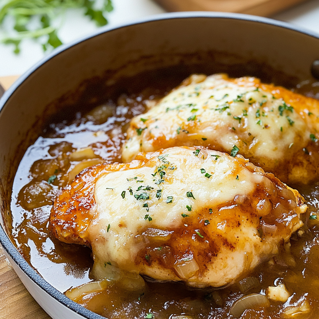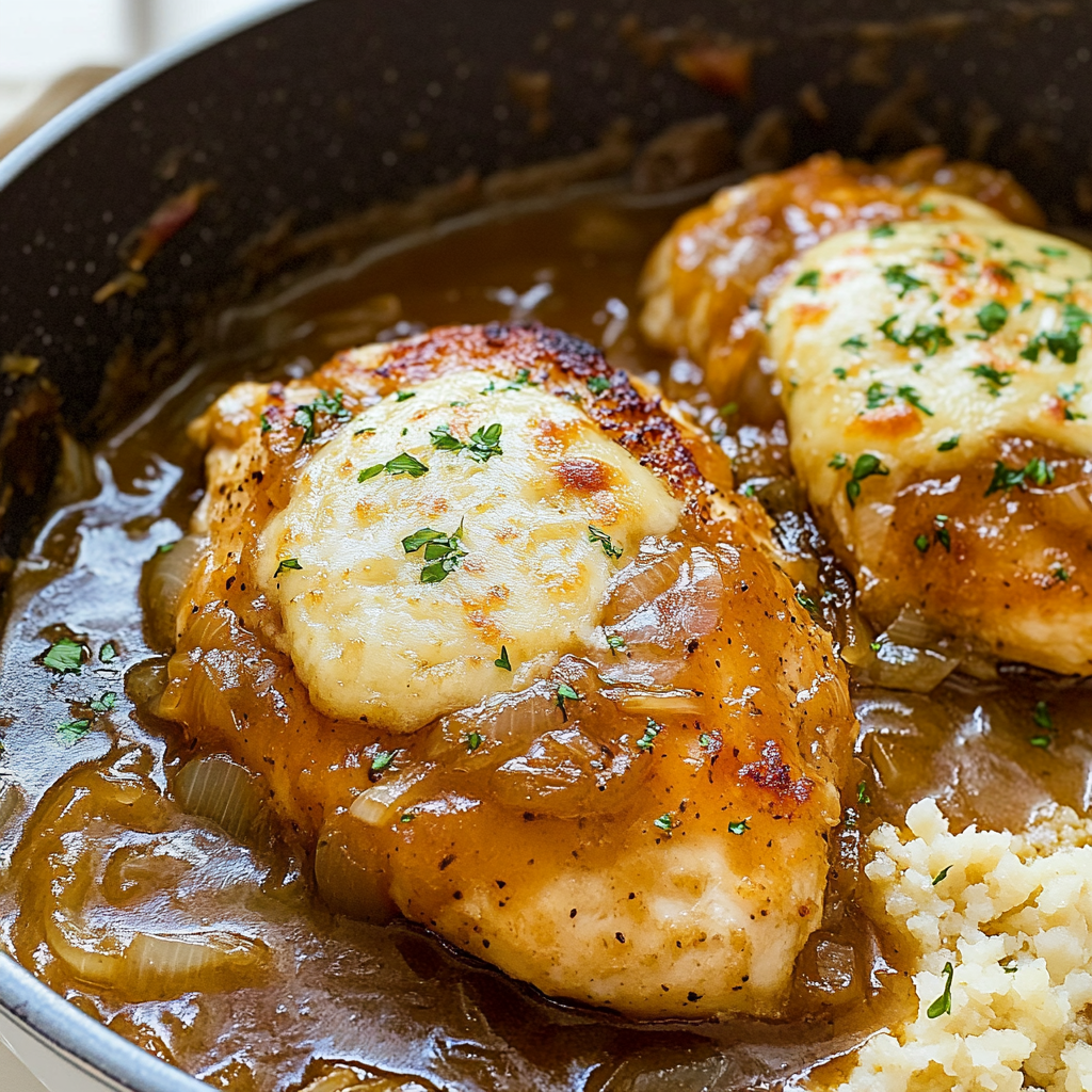 • French Onion Chicken combines savory flavors with gooey cheese, making dinner feel like an indulgent treat