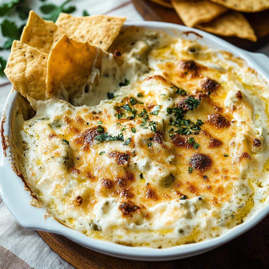 Once out of the oven, let it cool slightly before serving. Pair with crispy tortilla chips or fresh veggies—the choice is yours!