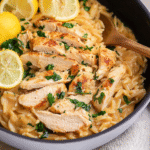 • This showstopping Lemon Chicken Orzo delivers restaurant-quality results using simple ingredients you probably already have at home.