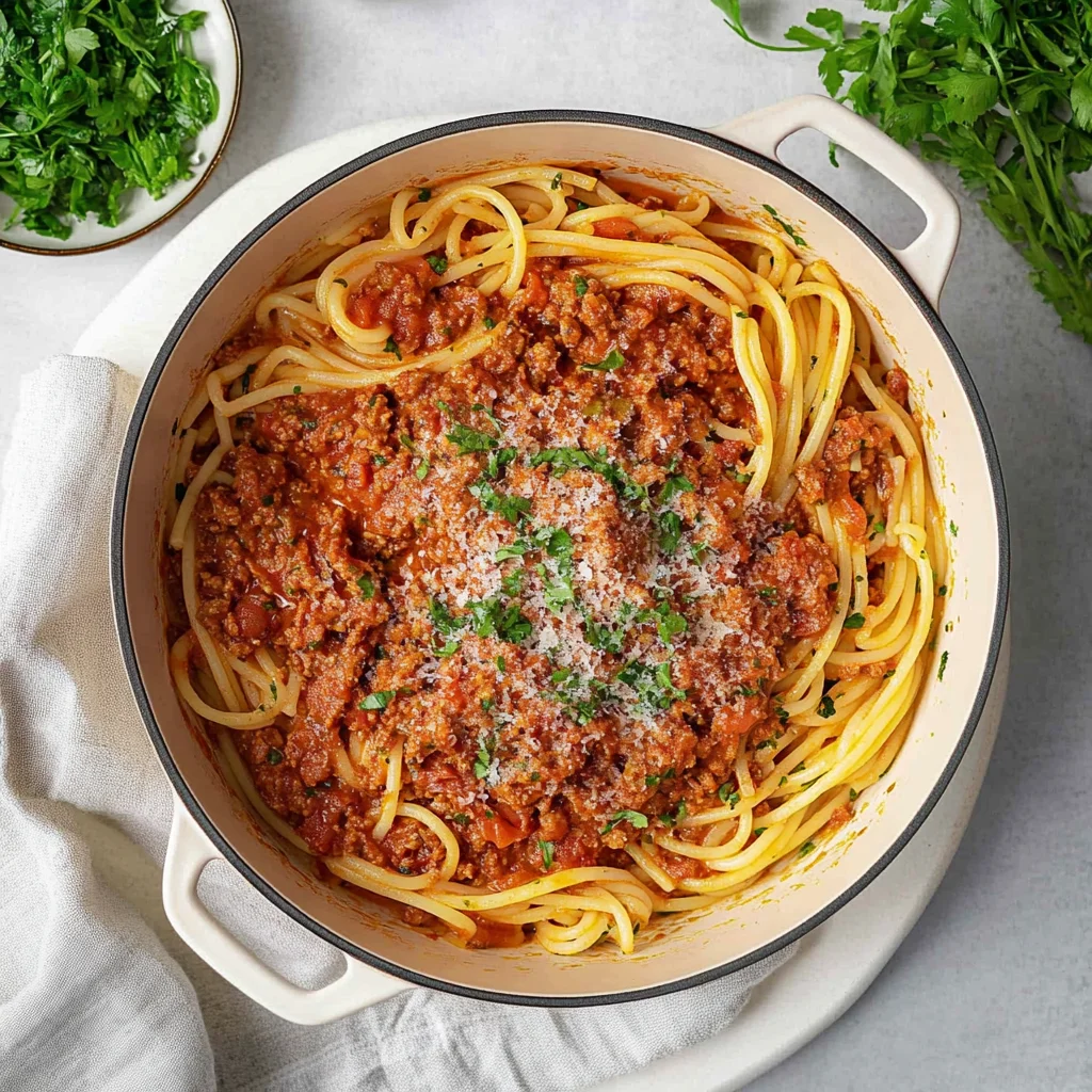 Pasta Bolognese is a comforting Italian dish featuring rich, hearty ground beef simmered with aromatic vegetables and tomatoes. This savory sauce pairs perfectly with spaghetti, creating a satisfying meal that’s ideal for family dinners or gatherings. Enjoy it topped with freshly grated Parmesan cheese for an extra touch of flavor. Let’s dive into the recipe!