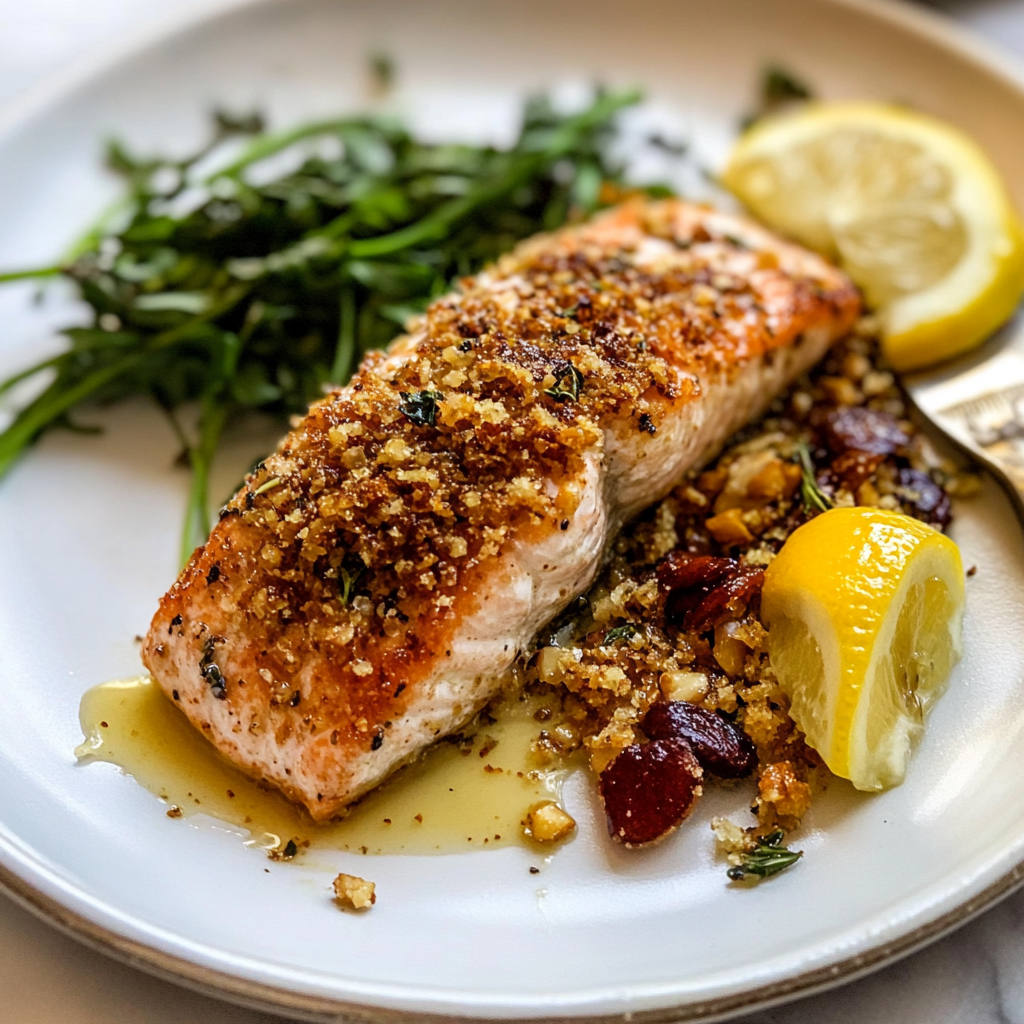 In summary, Pecan Crusted Salmon is an exquisite dish that combines flavor and texture beautifully. With its easy preparation method and delicious crunch from pecans, it’s ideal for both everyday meals and special occasions. Pair it with vibrant sides like roasted veggies or salads for a complete dining experience. Try this recipe today and enjoy a healthy yet indulgent treat that will impress everyone at your table!