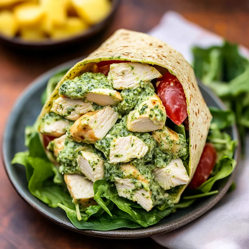 Pesto chicken salad is a vibrant dish combining grilled chicken, fresh vegetables, and homemade pesto.