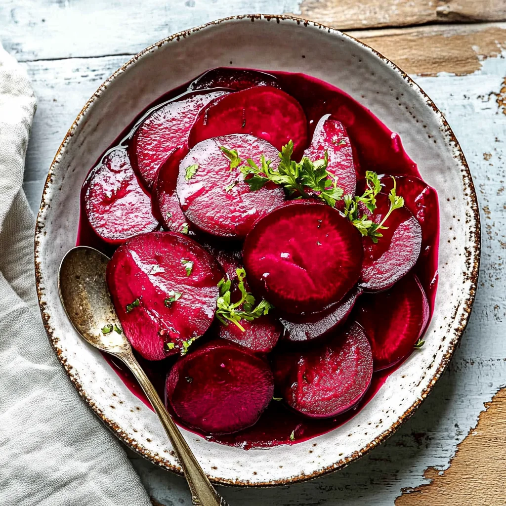 Imagine the vibrant, jewel-toned beets bubbling away in a pot, their earthy aroma mingling with the tangy scent of white vinegar as you prepare this delightful pickled beets recipe. The moment you slice into the tender rounds, you can almost taste the sweet and savory symphony that awaits, infused with the warmth of mustard seeds and the gentle kick of whole cloves.