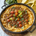 Rotel dip with ground beef is a crowd-pleasing appetizer that combines savory ground beef, creamy cheese, and zesty Rotel tomatoes into a deliciously gooey experience. Perfect for game days, parties, or cozy movie nights, this dip is easy to whip up and sure to be the star of any gathering. Serve it warm with tortilla chips or fresh veggies for an irresistible snack that everyone will love.