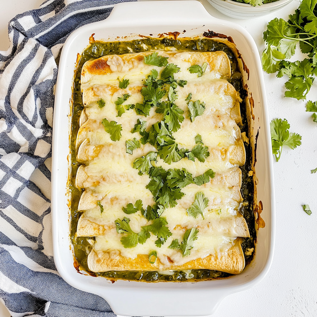 - The vibrant green salsa brightens the dish, while the creamy filling makes each bite comforting and satisfying