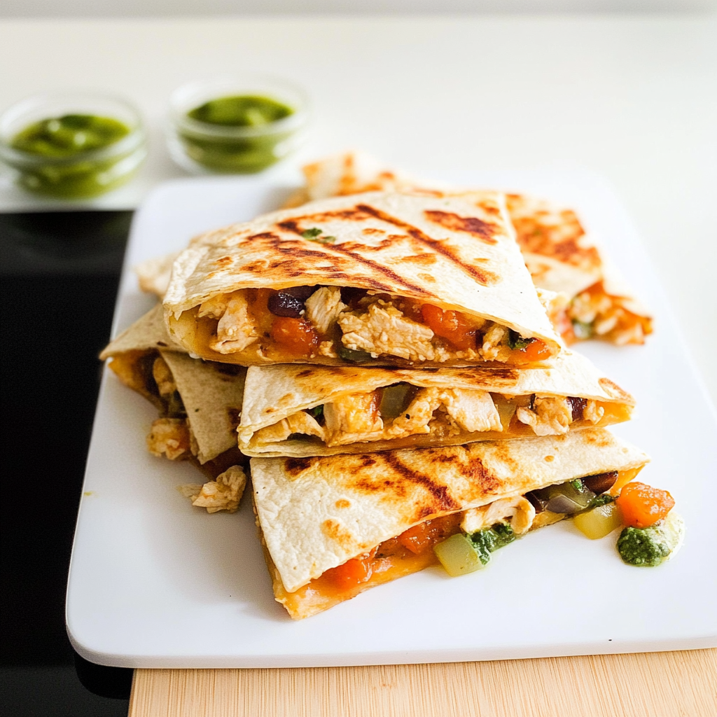 First, sear the chicken in a hot skillet until golden brown. While it cooks, prep your veggies and cheese so they’re ready to go. Once the chicken is done, slice it up, mix with the veggies, and assemble your quesadillas for an efficient cooking process.