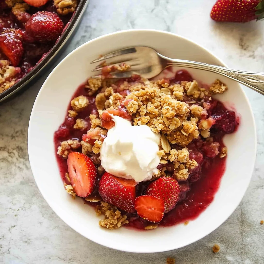 For a fun twist on traditional strawberry crumble, consider mixing in some sliced rhubarb for a tart contrast or adding a handful of blueberries for a berry medley. You can also experiment with different spices like nutmeg or ginger to enhance the flavor profile. Feel free to adjust the sweetness based on your taste and the strawberries’ ripeness.