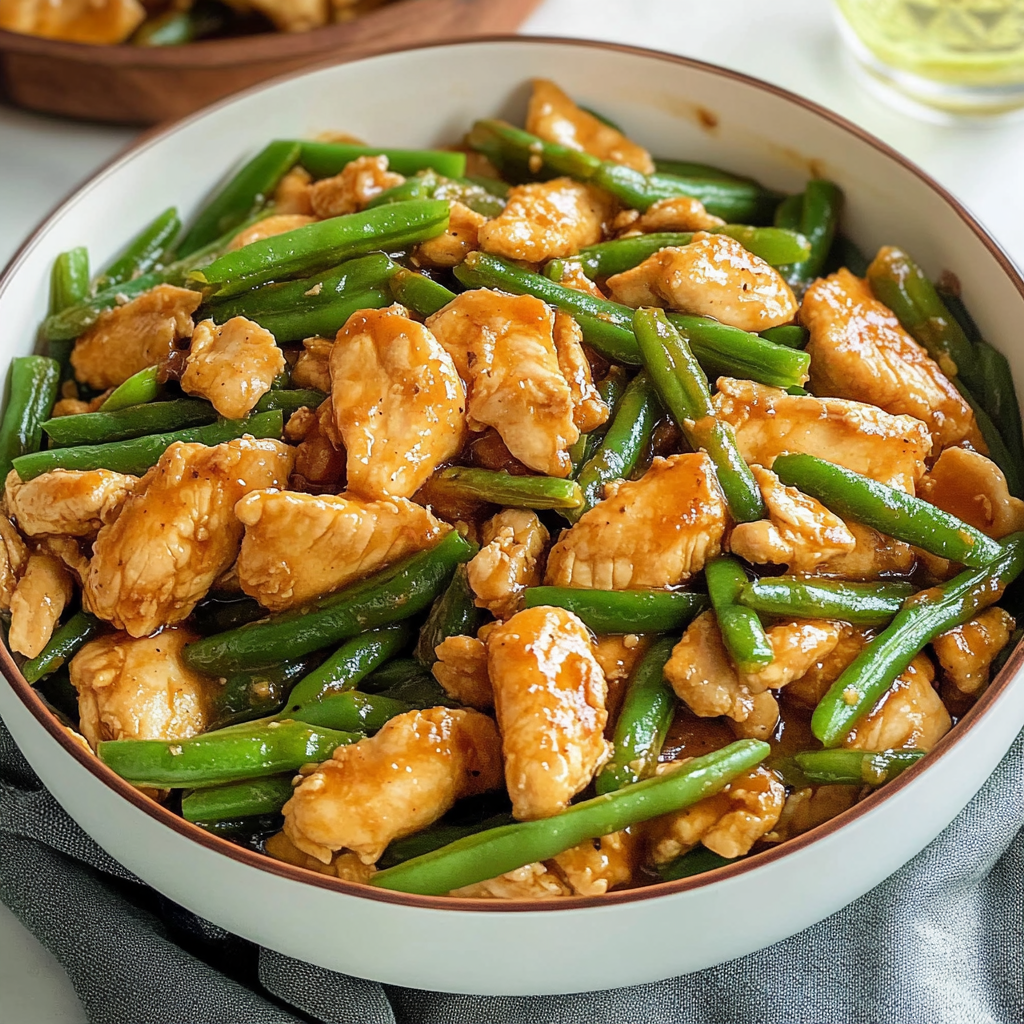In summary, String Bean Chicken is a flavorful stir-fry that brings together tender chicken and crunchy string beans in a savory sauce. This dish is not only quick to prepare but also versatile enough to suit various tastes through customization. Whether served over rice or noodles, String Bean Chicken makes for a satisfying meal everyone can enjoy. Consider trying this delicious recipe to add variety to your weeknight dinners!