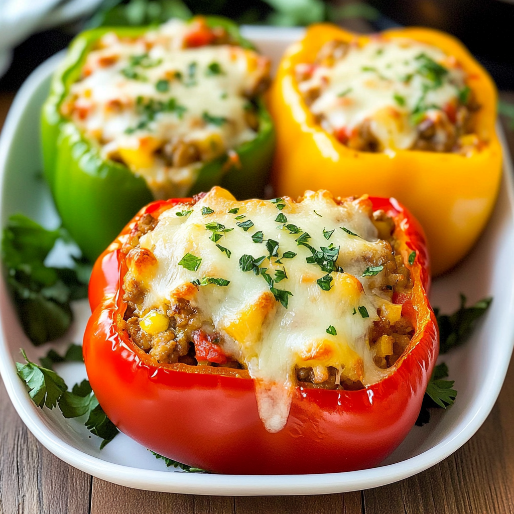 Stuffed bell peppers are a vibrant and satisfying comfort food that brings together colorful peppers filled with a savory blend of ground meat, rice, and spices. Baked to perfection, this dish not only pleases the eyes but also tantalizes the taste buds, making it an ideal choice for family dinners or festive gatherings. Whether you stick to the classic recipe or add your own twist, these stuffed peppers are sure to delight!